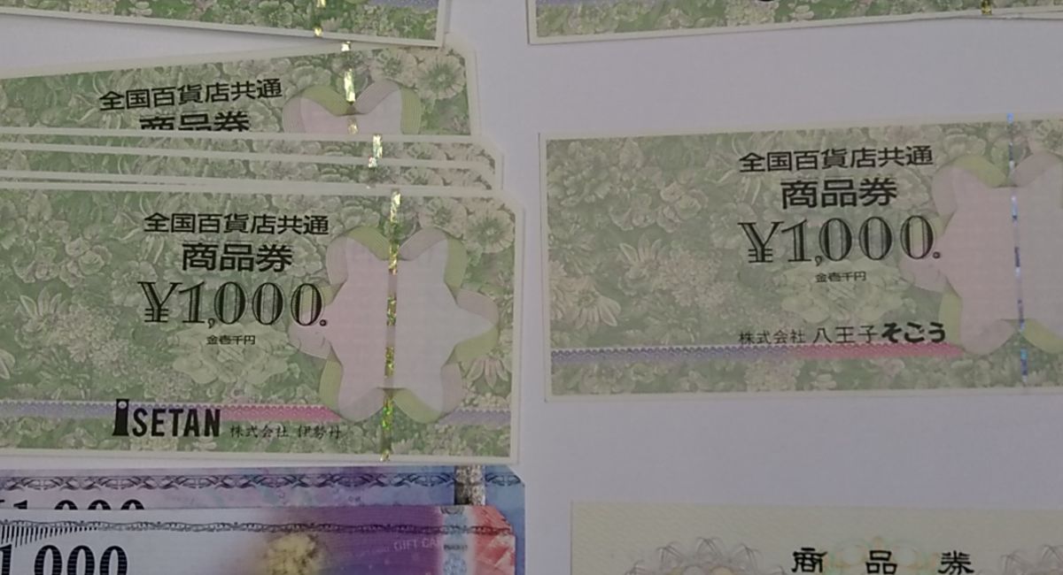 商品券についてです 八王子の方に質問です八王子駅のセレオで全国百貨店共通商品券ってつかえますか? 「ここに書く前に調べたのですが乗っていなかった」×乗って 載ってそれが答えです。利用店舗一覧に載っていなかったら、余程最近開業の店舗でない限り使えないと判断するのが常伊勢丹商品券:9% 三越商品券:9% 西武百貨店商品券:985% ドンキホーテ商品券:98% 東武百貨店商品券:98% 大丸商品券:98% そごう商品券:98% 小田急百貨店商品券:975% 京王百貨店商品券:985% 東急百貨店商品券:985% 京急百貨店商品券そごう クラブオン お買い物券 00円(商品券)の高価買取なら金券ショップの「j・マーケット(ジェイマーケット)」へ!ネットでカンタンにそごう クラブオン お買い物券 00円(商品券)の郵送買取申込が可能です!そごう クラブオン お買い物券 00円(商品券)を都内店舗への持ち込み